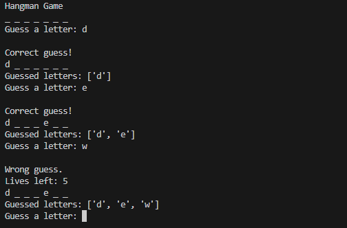print("Guessed letters:", guessed_letters)